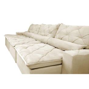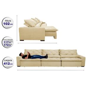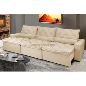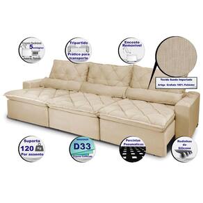 Sofá Lisboa 4,12m Retrátil, Reclinável com Molas no Assento e Almofadas Lombar Tecido Suede - Bege
