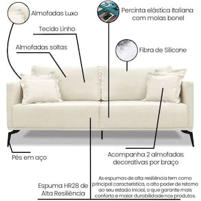 O Sofá Liv foi desenvolvido para quem procura uma peça que une conforto e estilo. Com 220cm de largura e revestimento em linho de alta qualidade, proporciona um toque sofisticado e aconchegante, ideal para qualquer ambiente. Os pés em aço carbono garantem resistência e um design moderno, enquanto o encosto conta com almofadas soltas em fibra de silicone, oferecendo um suporte macio. O assento fixo possui percintas elásticas italianas e molas bonel, combinado com espuma HR28 e plumante em silicone, que garantem qualidade e conforto. Acompanha também duas almofadas decorativas, que adicionam um charme extra e permitem personalizar ainda mais o seu produto. Perfeito para diversos ambientes, o Sofá Liv é a escolha ideal para quem busca aliar conforto e beleza no dia a dia. Este móvel chegará em sua casa separado em 01 volume.