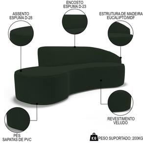 Conheça o Sofá Living 2 Lugares 180cm Braço Direito Mozart D06 Veludo Verde, da Mpozenato - uma obra-prima de design e conforto que elevará sua sala de estar a novos patamares.