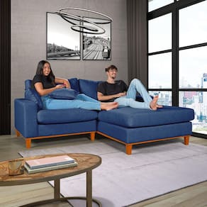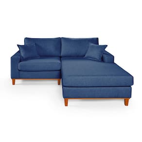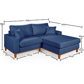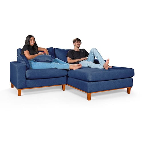 Sofa Living 2 Lugares Chaise Revestido Linho Base em Madeira - Azul