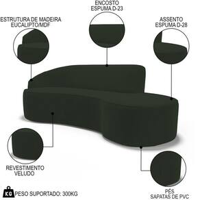 Conheça o Sofá Living 3 Lugares 210cm Braço Esquerdo Mozart D06 Veludo Verde, da Mpozenato - uma obra-prima de design e conforto que elevará sua sala de estar a novos patamares.