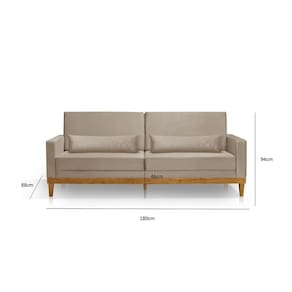 Sofá Living 3 lugares 180cm Julie irá transformar sua sala em um ambiente de conforto, bem estar e modernidade, acomodando até 3 pessoas sentadas. Fabricado com madeira de eucalipto 100% reflorestada, seu revestimento em Sued 100% poliéster, que agrega elegância e estilo ao produto. Almofadas fixas com enchimento com espuma D26, o assento possui percintas elásticas e espuma D26 de alta qualidade que faz esse produto ter um alto nível de conforto e qualidade. Base e pés em madeira maciça. Acompanham 2 almofadas decorativas. Produto possui 5 pés, para melhor equilíbrio do produto. Acompanha Almofadas extras: 02 Almofada do assento: Fixa Almofada do encosto: Fixa Altura do assento até o chão: 46 cm Altura do Encosto: 48 cm Altura dos Pés: 15 cm Ambiente Principal: Sala de Estar Cor: Bege Cor do Produto: Bege Densidade do Assento: D-26 Densidade do Encosto: D-26 Enchimento do Assento: Espuma Enchimento do Encosto: Espuma Estilo de Braço: Braços Quadrados Firmeza do Assento: Macio Informações Complementares: Suporta até 120 kgs por assento. Base e pés em madeira maciça. Acompanham 2 almofadas decorativas. Itens Inclusos: 01 Sofa Living Julie 180cm. Linha ou Coleção: Linha Material dos Pés: Madeira maciça Montagem Flex: Nao Necessita Montagem: Não Origem do Produto: Nacional Peso: 52 kg Pet Friendly: Não Possui Percintas Elásticas: Sim Possui Pés: 05 Possui Rodízio: Não Recomendações de Uso, Manutenção e Limpeza: Não usar produtos quimicos, recomendasse utilizar pano seco. Revestimento do Braço: Tecido Sued Suporta Até (kg): 120 kg Tamanho: Tecido Predominante: Suede Tipo de Encosto: Fixo Tipo de Mola: Não Possui Marca: Nabas Estofados