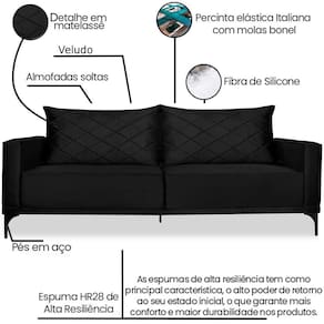 Modelo: Sofa Living 3 Lugares Nori 200cm Veludo Deluxe