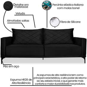 Modelo: Sofa Living 3 Lugares Nori 220cm Veludo Deluxe