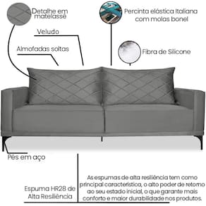 Modelo: Sofa Living 3 Lugares Nori 220cm Veludo Deluxe
