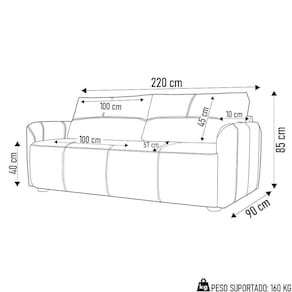 Largura do assento: 200 cm.