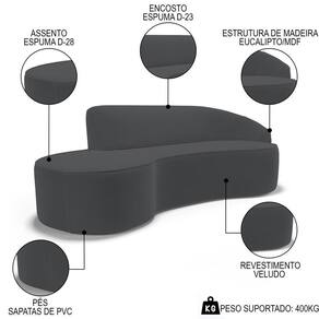Conheça o Sofá Living 4 Lugares 280cm Braço Direito Mozart D06 Veludo Cinza, da Mpozenato - uma obra-prima de design e conforto que elevará sua sala de estar a novos patamares.
