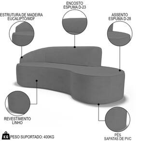 Conheça o Sofá Living 4 Lugares 300cm Braço Esquerdo Mozart D06 Linho Cinza Escuro, da Mpozenato - uma obra-prima de design e conforto que elevará sua sala de estar a novos patamares.