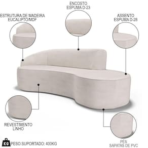 Com seu design curvo e configuração de braço do lado esquerdo, esse sofá não é apenas uma peça de mobília, mas uma obra de arte. Fabricado com atenção meticulosa aos detalhes e com acabamento nos mais altos padrões, ele exala elegância e sofisticação. Seja para uma reunião ou simplesmente para relaxar após um longo dia, esse sofá 4 lugares é ideal para criar uma atmosfera aconchegante e convidativa ao seu ambiente. Atualize o seu espaço com este sofá decorativo impressionante e transforme o seu espaço em um paraíso de estilo e conforto.