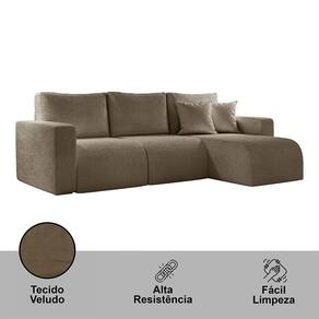 Sofá Living 90cm + 90cm Com Chaise Direito Meu Sofá Online B016 Veludo Marrom