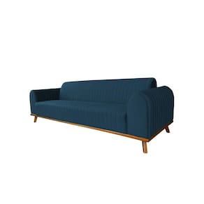 AS IMAGENS SÃO MERAMENTE ILUSTRATIVAS E PODEM SOFRER VARIAÇÕES DE COR E PEQUENOS DETALHES DE ACORDO COM O SEU MONITOR, ILUMINAÇÃO DO AMBIENTE E ATÉ MESMO A SUA PERCEPÇÃO VISUAL.Sofà Living Ãtila 2,10m em Veludo Azul Marinho Base Madeira MaciÃa