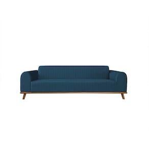 AS IMAGENS SÃO MERAMENTE ILUSTRATIVAS E PODEM SOFRER VARIAÇÕES DE COR E PEQUENOS DETALHES DE ACORDO COM O SEU MONITOR, ILUMINAÇÃO DO AMBIENTE E ATÉ MESMO A SUA PERCEPÇÃO VISUAL.Sofà Living Ãtila 2,30m 4 Lugares em Veludo Azul Marinho