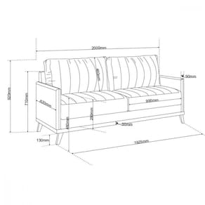 Caracteristicas: - Estrutura Madeira de Eucalipto - Assento fixo com espuma D23, percinta elastica, 1 Mola Bonnel 10cm no meio de cada assento, manta de fibra siliconada - Encosto fixo com 2 almofadas removiveis, 100 fibra siliconada - Braco com Espuma D16, laterais em corano - 5 Pes de madeira - Suporte de peso 90 kg por assento - Garantia de 03 meses
