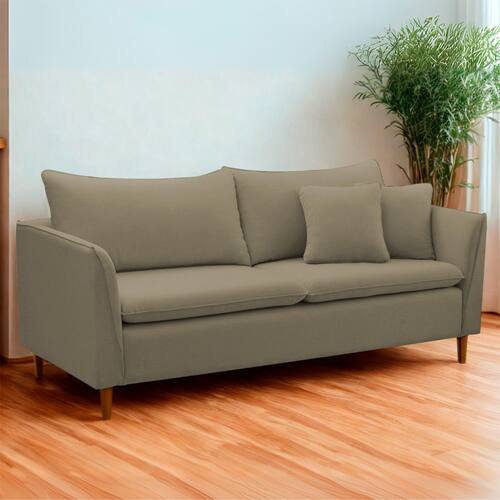 Sofá em veludo de toque macio, disponível em . Possui assento fixo com pillow top em espuma D26, estrutura reforçada em madeira de eucalipto com mola bonnel e percintas italianas. Conta com pés removíveis, encosto em fibra de silicone e acompanha almofadas decorativas.