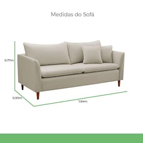 Sofá em veludo de toque macio, disponível em . Possui assento fixo com pillow top em espuma D26, estrutura reforçada em madeira de eucalipto com mola bonnel e percintas italianas. Conta com pés removíveis, encosto em fibra de silicone e acompanha almofadas decorativas.