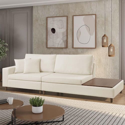 Sofá Living Lotus com Apoio Lateral Direita 2,40M em Linho