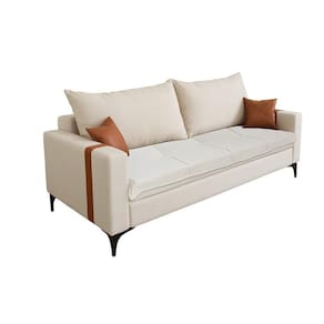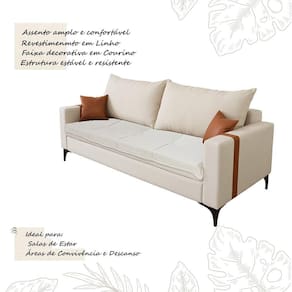 AS IMAGENS SÃO MERAMENTE ILUSTRATIVAS E PODEM SOFRER VARIAÇÕES DE COR E PEQUENOS DETALHES DE ACORDO COM O SEU MONITOR, ILUMINAÇÃO DO AMBIENTE E ATÉ MESMO A SUA PERCEPÇÃO VISUAL.Sofà Living Madri 2 Lugares 1,40m Linho Bege com Detalhe no BraÃo em Corino Caramelo