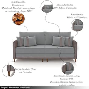 Sofá Living Montecarlo 2 Lugares Bipartido 172cm Pés Em Madeira Veludo/pu Cinza G33 - Gran Belo