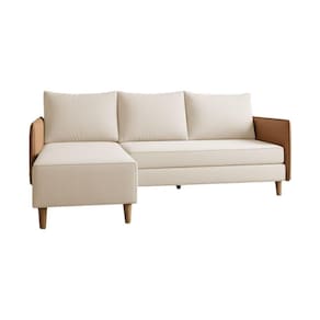 AS IMAGENS SÃO MERAMENTE ILUSTRATIVAS E PODEM SOFRER VARIAÇÕES DE COR E PEQUENOS DETALHES DE ACORDO COM O SEU MONITOR, ILUMINAÇÃO DO AMBIENTE E ATÉ MESMO A SUA PERCEPÇÃO VISUAL.Sofà Living Roma com Chaise 3 Lugares 1,90m Linho Bege com BraÃo Corino Caramelo