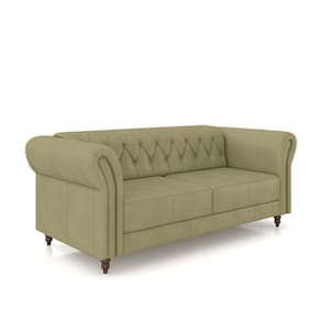 O revestimento em couro confere um aspecto luxuoso e elegante, refletindo o estilo clássico Chesterfield. Seus pés torneados fixos, em madeira maciça, adicionam um charme adicional e garantem estabilidade.