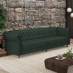 Sofá Living Sala De Estar Stanford Chesterfield 3 Lugares 260cm Pés De Madeira Couro Verde G58 - Gran Belo