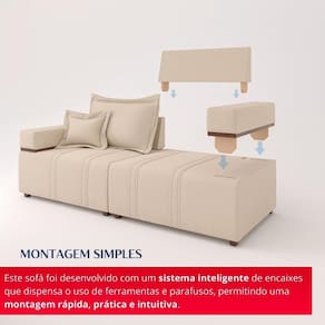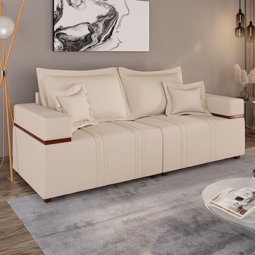 Sofá Living Verona 3 Lugares 2,00m Bege- Top Decor