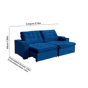 Medidas do Produto:Altura: 1,00mtCumprimento fechado: 1,05cmCumprimento aberto: 1,60cmLargura: 2,70 cmInformações Extras:Peso suportado: 120kg por pessoaGarantia: 3 mesesFabricante: De casa décor e estofadosInformações Importantes:- OS TECIDOS PODEM SOFRER ALTERAÇÕES DE TONALIDADES DEPENDENDO DO LOTE DE PRODUÇÃO E TAMBÉM DA RESOLUÇÃO DA TELA DO SEU MONITOR/CELULAR.- Os objetos que ambientam as fotos não acompanham o produto.