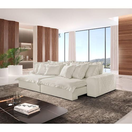 Braco: Espuma D28, tecido com matelasse. Incluso: almofadas decorativas.