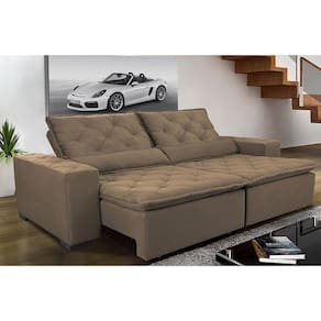 Sofá Magnum 2,02m Retrátil, Reclinável Com Molas E Almofadas Lombar Tecido Suede Velusoft Castor Chegou o Maravilhoso Sofá Magnum. O que o torna especial são assentos com espuma D33 envolvidas em fibra Siliconada Compactada para que tenha um toque gostoso e aconchegante, além de seu maravilhoso designer com costuras duplas e puxes que o embelezam, proporcionando conforto de um colchão em um Belíssimo Sofá. Sua sala jamais será como antes!