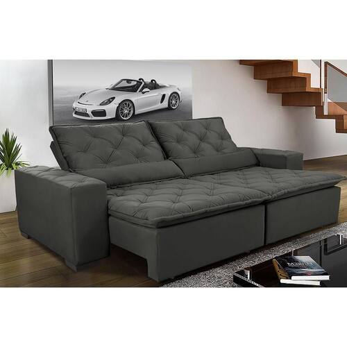 Sofá Magnum 2,02m Retrátil, Reclinável Com Molas E Almofadas Lombar Tecido Suede Velusoft Grafite Chegou o Maravilhoso Sofá Magnum. O que o torna especial são assentos com espuma D33 envolvidas em fibra Siliconada Compactada para que tenha um toque gostoso e aconchegante, além de seu maravilhoso designer com costuras duplas e puxes que o embelezam, proporcionando conforto de um colchão em um Belíssimo Sofá. Sua sala jamais será como antes!