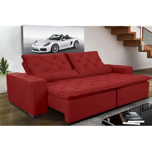 Sofá Magnum 2,22m Retrátil, Reclinável, Molas E Almofadas Lombar Suede Vermelho Cama Inbox Chegou o Maravilhoso Sofá Magnum. O que o torna especial são assentos com espuma D33 envolvidas em fibra Siliconada Compactada para que tenha um toque gostoso e aconchegante, além de seu maravilhoso designer com costuras duplas e puxes que o embelezam, proporcionando conforto de um colchão em um Belíssimo Sofá. Sua sala jamais será como antes!