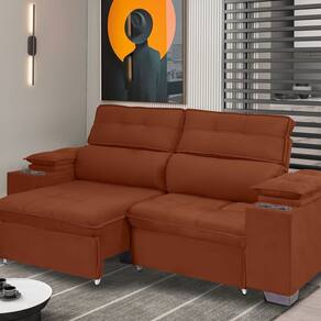 Sofá Retrátil e Reclinável Manaus. Com uma estrutura interna resistente, ele possui a estabilidade necessária para esse tipo de móvel, tendo o enchimento das almofadas em fibra siliconada, percintas elásticas italianas e molas bonnel, dão o suporte necessário para o conforto, sendo perfeito para acomodar você e as pessoas que ama naquela maratona de séries, ou até mesmo para descansarem aos finais de semana. Dê um up no visual da sua casa. Demais, né? Garanta já o seu! Produto Montado: Não Acompanha Almofadas extras: Não Almofada do assento: Fixa Almofada do encosto: Fixa Altura do assento até o chão: 45.0000 Altura do Encosto: 105 cm Altura dos Pés: 6 cm Altura Máxima dos Pés: 6.0000 Ambiente Principal: Sala de Estar Bipartida: Sim codigo_ean: 7900288111074 Cor: Terracota Cor do Produto: Terracota Enchimento do Assento: Fibra Siliconada Enchimento do Encosto: Fibra Siliconada Estilo de Braço: Braços Quadrados Firmeza do Assento: Macio Gramatura do Tecido: 200 g/m² Itens Inclusos: 1 Sofá Largura do Braço: 25 cm Linha ou Coleção: Não Marca: Ares Estofados Material da Corrediça do Sofá: Aço/Metal Material dos Pés: PVC Montagem Flex: Não aplica Necessita Montagem: Não Nível de Conforto: Macio Origem do Produto: Nacional Peso: 45 kg Peso Suportado por m²: 120 kg/m² Pet Friendly: Não Porta Copos: Sim Possui Baú: Não Possui Entrada USB: Não Possui Mola: Sim Possui Percintas Elásticas: Sim Possui Pés: 04 Possui Rodízio: Sim Profundidade Quando Estendido: 145 cm Quantidade de Estágios do Encosto: 5 Quantidade de Itens: 4 Quantidade de Molas por Assento: 2 Recomendações de Uso, Manutenção e Limpeza: Fazer a limpeza com aspirador de pó em baixa rotação ou escova com cerdas macias para a eliminação de poeira e pano úmido em água. Revestimento do Braço: Tecido Rodízio com Trava: Não Suporta Até (kg): 360 kg Tecido Predominante: Veludo Tipo de Encosto: Regulável Tipo de Mola: Molas Bonnel Tipo de Sofá: Sofá Comum Marca: Ares Estofados