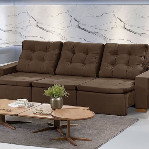 Sofá Manaus Modular 6 Lugares 305cm Retrátil e Reclinável - Marrom