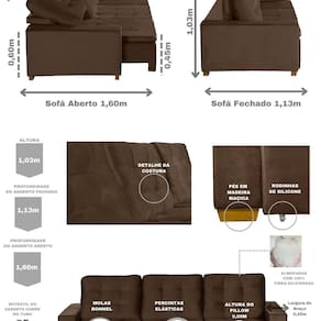 Recomendações de Manutenção: Utilizar o sofá em local seco, sem umidade