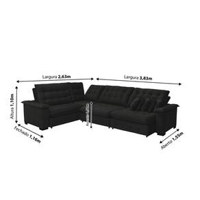 -Largura aproximada: 263x383cm (esquerda/direita).