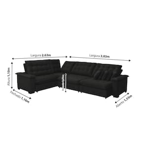 -Largura aproximada: 263x383cm (esquerda/direita).