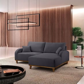 Sofá Mercúrio 2 Lugares com Chaise Lado Direito 185cm em Veludo Grafite