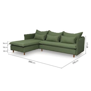 Amplie a história do seu sofá com kits de capas avulsas. Uma forma carinhosa e sustentável de renovar, manter seu estilo sempre em dia e fortalecer a conexão com seu lar, prolongando a vida do que você ama. Produto Montado: Sim Acompanha Almofadas extras: 03 Almofada do assento: Removível Almofada do encosto: Removível Altura do assento até o chão: 45.0000 Altura do Encosto: 55 cm Altura dos Pés: 12 Altura Máxima dos Pés: 12.0000 Ambiente Principal: Sala de Estar codigo_ean: 7900288246592 Complexidade da Montagem: Baixa: pode ser montado por uma pessoa sozinha Cor: Verde Cor do Produto: Verde Densidade do Assento: D-26 Densidade do Encosto: D-18 Enchimento do Assento: Espuma Enchimento do Encosto: Fibra Siliconada Firmeza do Assento: Médio Itens Inclusos: Módulos, Capa e Manual de Montagem Linha ou Coleção: Sôma Manual de Montagem e Instalação: https://product-hub-prd.madeiramadeira.com.br/800319682/documents/0c97b81b-4832-44b2-8d7a-1c8cf7dcbfb93255471476017594131742758.pdf Marca: CabeCasa MadeiraMadeira Material dos Pés: Madeira Maciça Necessita Montagem: Sim Origem do Produto: Nacional Peso: 85.5500 Pet Friendly: Não Possui Percintas Elásticas: Sim Possui Pés: 10 Possui Rodízio: Não Recomendações de Uso, Manutenção e Limpeza: Para a limpeza diária do seu sofá, utilize o aspirador para manter o sofá impecável, para manchas, água e sabão neutro. Em caso de serviço contratado para a limpeza, recomendamos profissional para limpeza mais intensa. Sistema de Montagem: Parafusos Suporta Até (kg): 160 kg Tecido Predominante: Linho Tipo de Encosto: Fixo Tipo de Mola: Molas Bonnel Tipo de Sofá: Sofá com Chaise