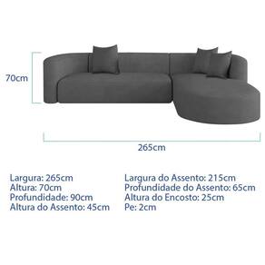 Sofá Modular Celinne Luxuoso Sala De Estar Decoração Luxo 265cm Suede Cor Cinza Escuro