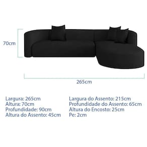 - Largura Total: 265cm;