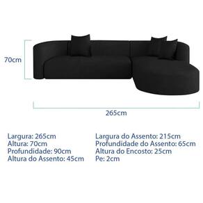 Sofá Modular Celinne Luxuoso Sala De Estar Decoração Luxo 265cm Suede Cor Preto