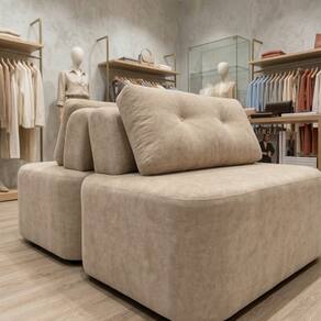 Sofá Modular Cielo 120X180cm Recepção Loja Sala de Estar 2 Módulos Bouclê Bege - Montanari`s Decor