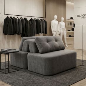O dimensionamento do Sofá Cielo foi planejado para oferecer ergonomia máxima sem comprometer a circulação do ambiente: