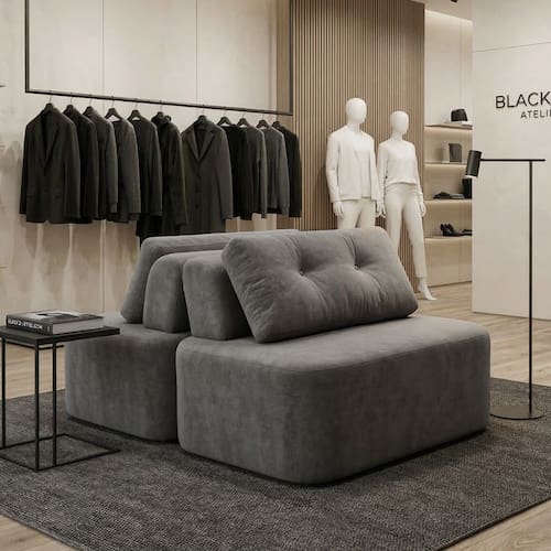 Sofá Modular Cielo 120X180cm Recepção Loja Sala de Estar 2 Módulos Bouclê Cinza - Montanari`s Decor