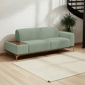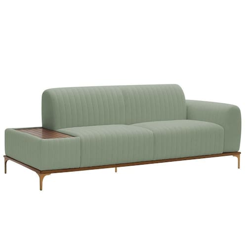 DiferenciaisMesa estofada integrada praticidade para apoiar objetos com estiloDesign moderno com acabamento em gomos sofisticação únicaAssento bipartido maior conforto e estética