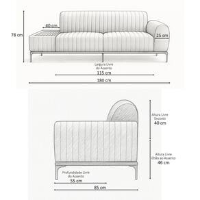 MedidasAltura Total: 78 cmLargura Total (com mesa estofada): 180 cmProfundidade Total: 85 cmPeso: 80 kgAltura do Encosto: 40 cmAltura do Assento ao Chão: 46 cmAltura do Braço: 20 cmAltura dos Pés: 18 cmLargura Livre do Assento: 115 cmProfundidade Livre do Assento: 55 cmLargura do Braço: 25 cmLargura da Mesa Estofada: 40 cmProfundidade da Mesa Estofada: 90 cm