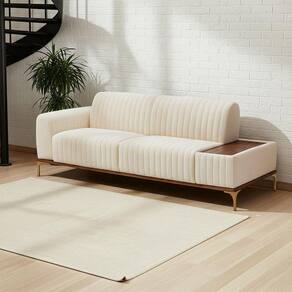Sofá Molino 3 Lugares 180cm C/mesa Auxiliar Esquerdo Pés Ouro.f Bouclé Off White - Nexta Casa