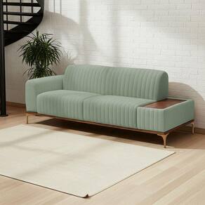 DiferenciaisMesa estofada integrada praticidade para apoiar objetos com estiloDesign moderno com acabamento em gomos sofisticação únicaAssento bipartido maior conforto e estética