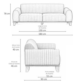 MedidasAltura Total: 78 cmLargura: 180 cmProfundidade: 90 cmPeso: 80 kgAltura do Encosto: 40 cmAltura do Assento ao Chão: 46 cmAltura do Braço: 20 cmAltura dos Pés: 18 cmLargura Livre do Assento: 130 cmProfundidade Livre do Assento: 55 cmLargura do Braço: 25 cm