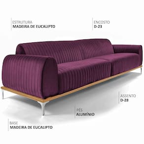 Sofá Molino 3 Lugares 210cm Pés Alumínio Veludo Roxo - Nexta Casa